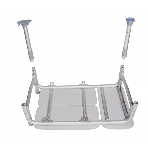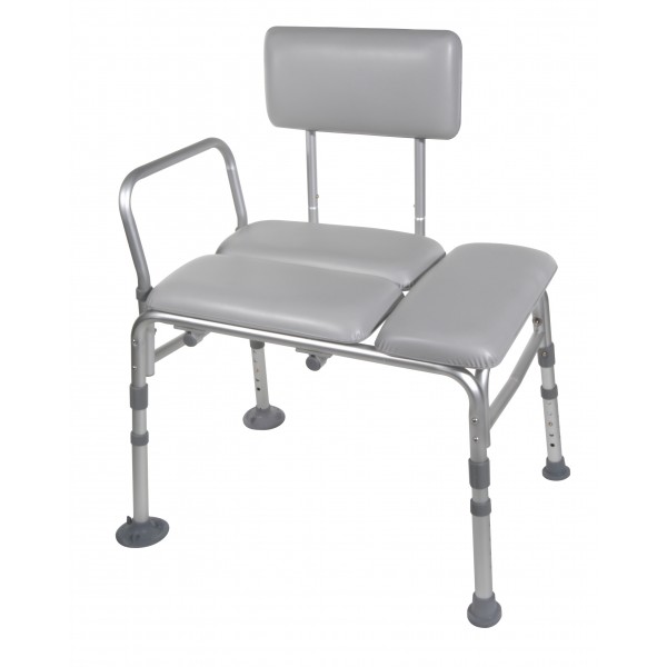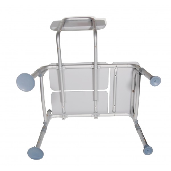 Featuring a comfortable cushioned seat and sturdy backrest, this lightweight aluminum transfer bench by Drive Medical is both comfortable and versatile. With unique "Dual Column" extension legs, you can adjust the height in 1/2" increments and the seat back adjusts without tools. The bench comes with a new "A" frame design composed of 1" aluminum frame that is light, sturdy and corrosion resistant. Extra suction cups provide additional stability and tool-free assembly will make your life even easier.