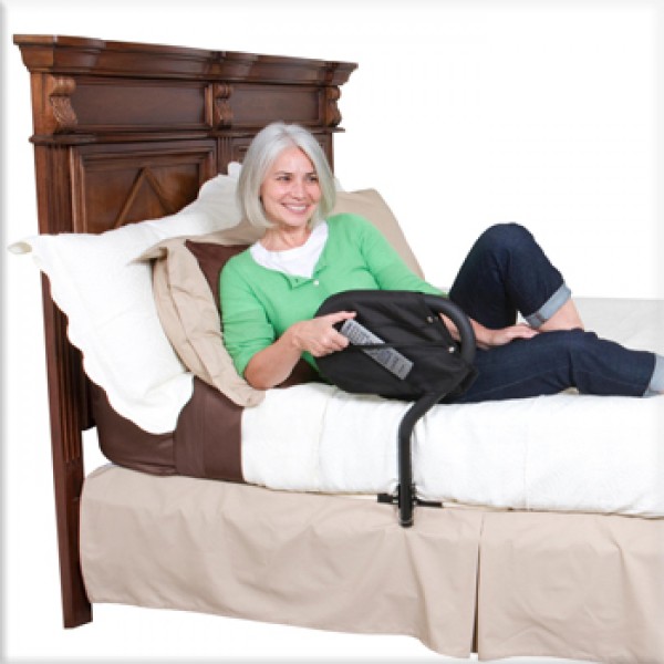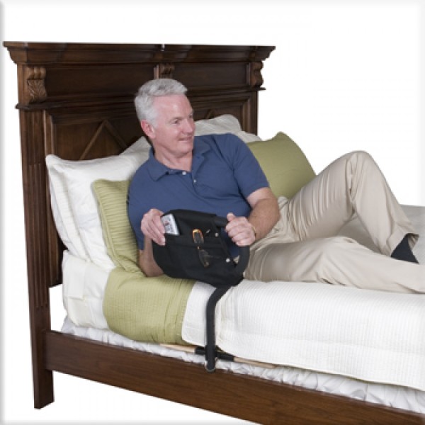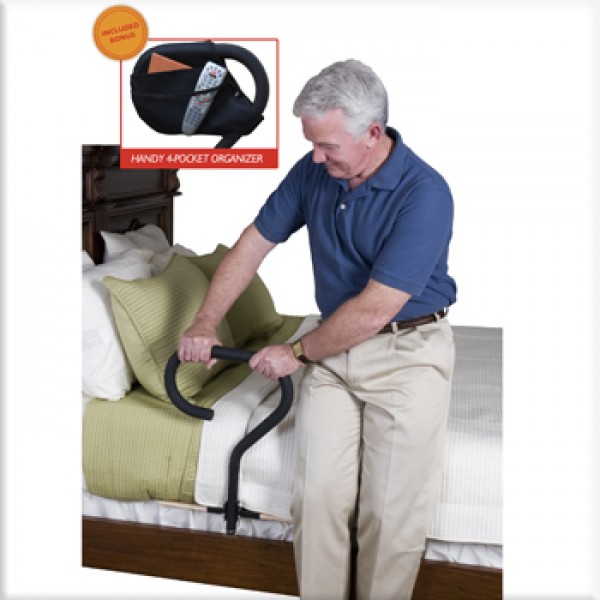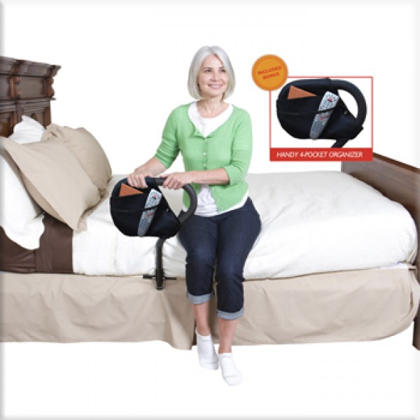 The Stander BedCane is a one of a kind bedside safety handle that allows its users to transfer in and out of bed safely. The ergonomic, no-slip handle provides a low profile, comfortable grip and is adjustable in height for maximum comfort. The wooden platform provides a strong and steady hold for safety and peace of mind. The BedCane comes with a bonus organizer pouch to help keep valuables close by during the night. The BedCane also comes with a safety strap that attaches to the bed frame for additional stability. It’s perfect for most home and hospital beds.
