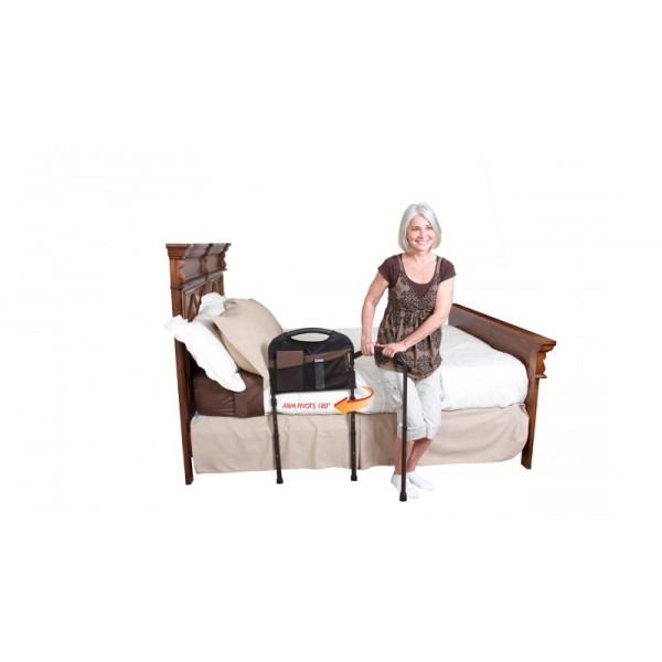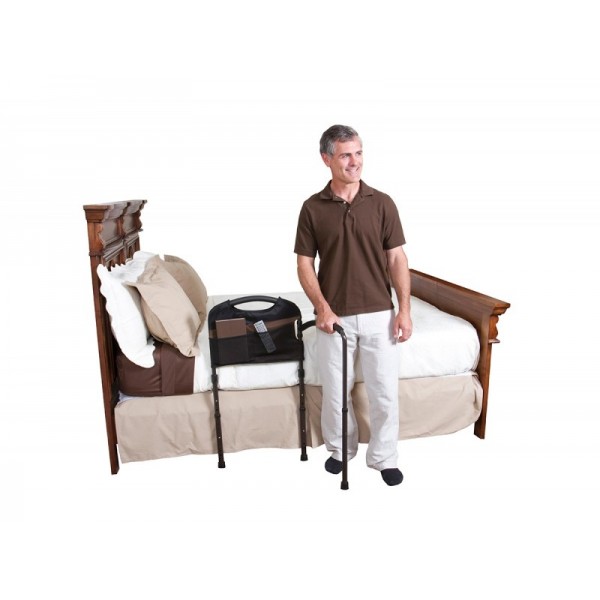 Designed to accommodate both in-home and hospital beds, the Mobility Bed Rail from Stander keeps you in bed when needed and assists you out of bed when it’s time to arise. The Swing Out Mobility Arm is there every step of the way, planting its non-slip legs firmly on the floor and moving with you as you transition smoothly out of bed. Setup and adjustment do not require any tools so the Mobility Bed rail can easily be customized it to meet your needs. The Swing Out Mobility Arm folds neatly back into the rail, occupying as little space as possible. Four pockets are sewn into the cover of the Mobility Bed rail to maximize storage space.