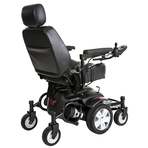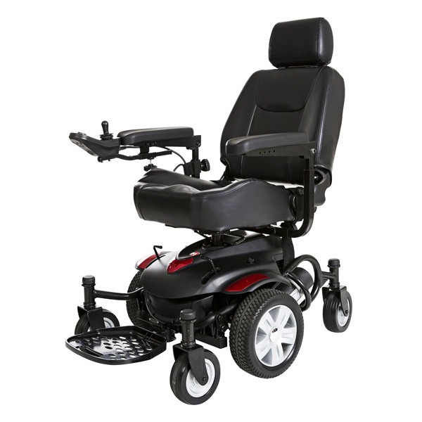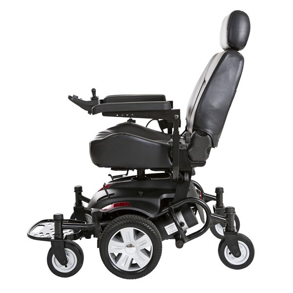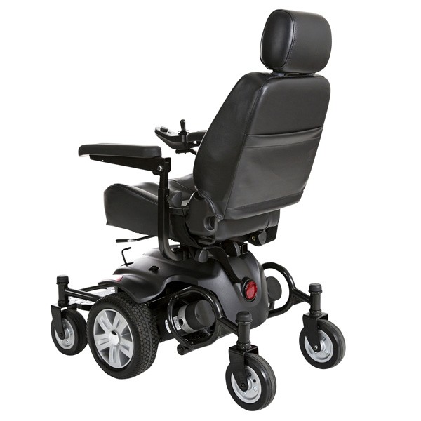 The Drive Medical Titan AXS Mid-Wheel Power Wheelchair offers a comfortable and stylish ride for users seeking unparalleled maneuverability on an exceptionally stable platform. The Titan AXS power wheelchair drive design allows you to turn on a dime with drive-wheels located directly under user, and a unique frame crafted to keep all 6 wheels on the ground at all times for superior stability. The Titan AXS power wheelchair is ideal for indoor use, navigating tight, enclosed spaces with ease. Choose from a variety of captain's seats available in 16" – 22" widths, and customize it to your liking with interchangeable color panels in red and blue included with every unit.